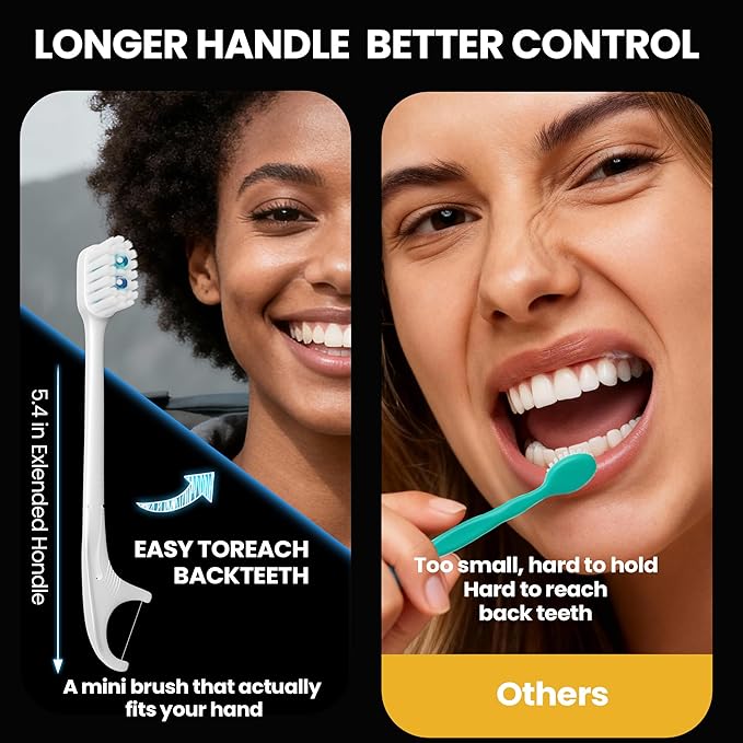 - Mini Size with Extended Handle for Better Grip:Portable mini size for easy carrying, upgraded with a longer handle to improve grip and help reach back teeth more easily for a thorough clean.