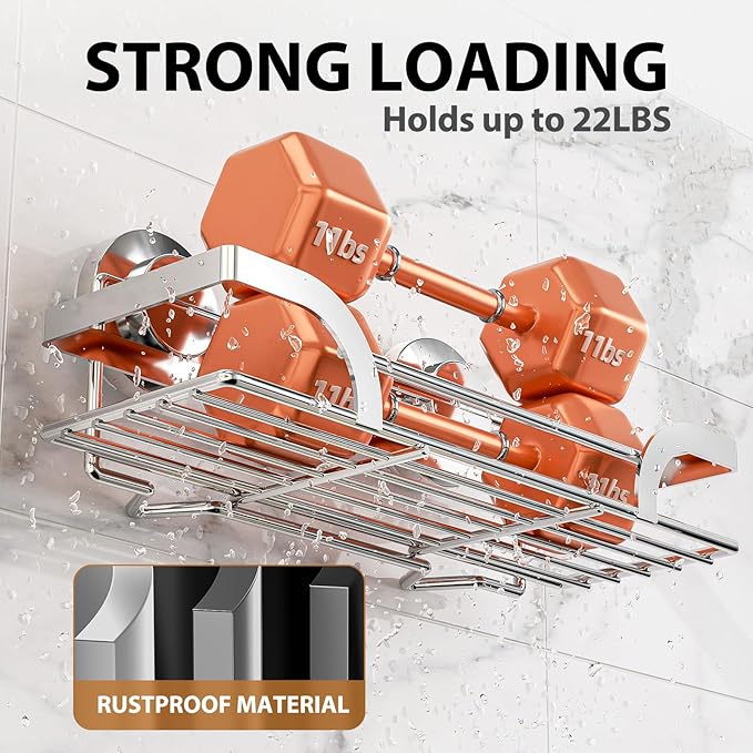 - Durable & Sturdy Suction: Suction Cup with bionic design of octopus tentacles ensures weather proof(-4°F-174°F), waterproof, and anti-aging; Suction Cup of shower shelf for inside shower with thicken plastic can hold up to 10 KG / 22 lbs and stick sturdy for years after installation without any concerns
