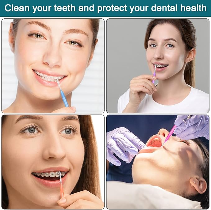 - Carefully Designed & Efficient cleaning: The interdental brushes for braces can not only remove food residue and debris that ordinary toothbrushes cannot reach, but also prevent bad breath and tooth patterns, effectively cleaning teeth. Helps maintain healthy gums and teeth, and whitens teeth, making it an essential oral care tool for families.