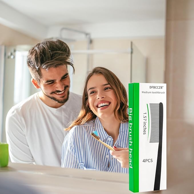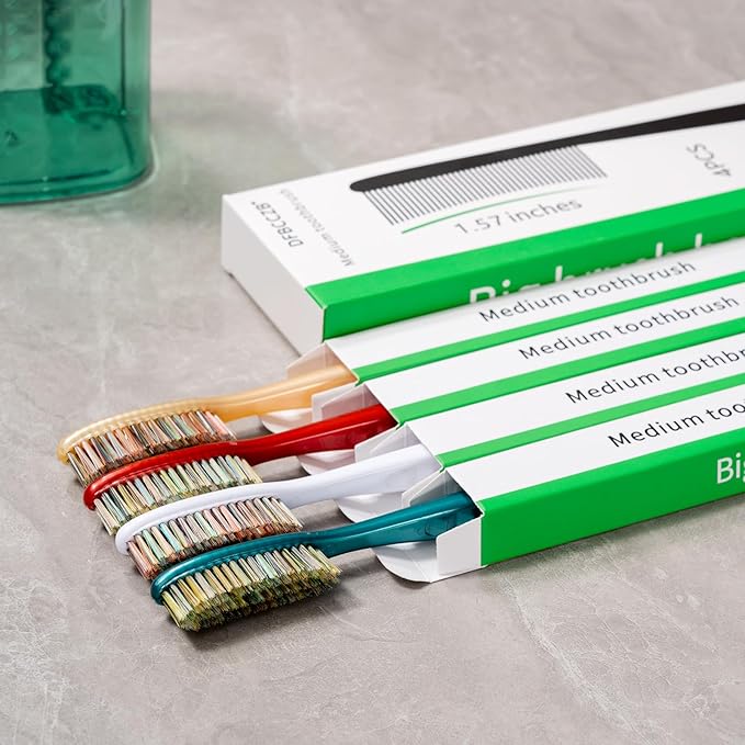Big Head Medium Toothbrush Long Head Adult Toothbrush Cleaning Stains whitening Teeth Set of 4.