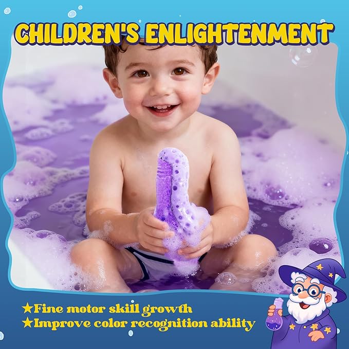 - Bathing Instantly Turns Into A Fun Paradise: Colorful children's bathing toys. When they come into contact with water, the foam will pop out, swirling into a dreamy vortex and giving off a faint fragrance (soothing but not pungent). Add warm water and witness this magical moment, and the foam will burst out. Turn the dull bath into a magical adventure in an instant, and the baby will fall in love with bathing from then on.
