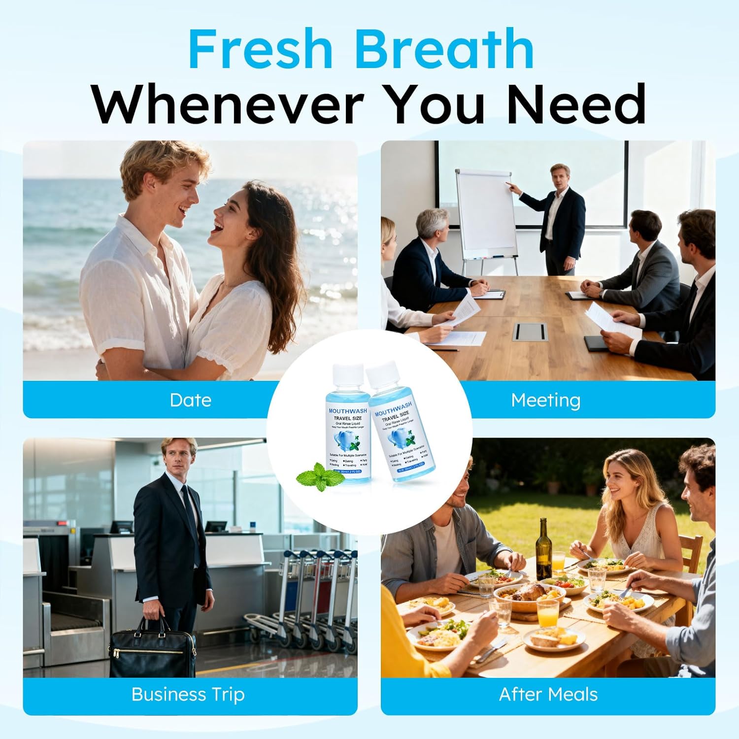 - Brand: LLHQAMT.Widely used: travel size mouthwash bulk Suitable for use after meals, business trips, travelling, social appointments. Allows you to freshen your breath at any time. Or place in guest rooms or hotel bathrooms so guests can apply at any time, also provides a convenient bulk mouthwash option for healthcare facilities, shelters, homeless and more.