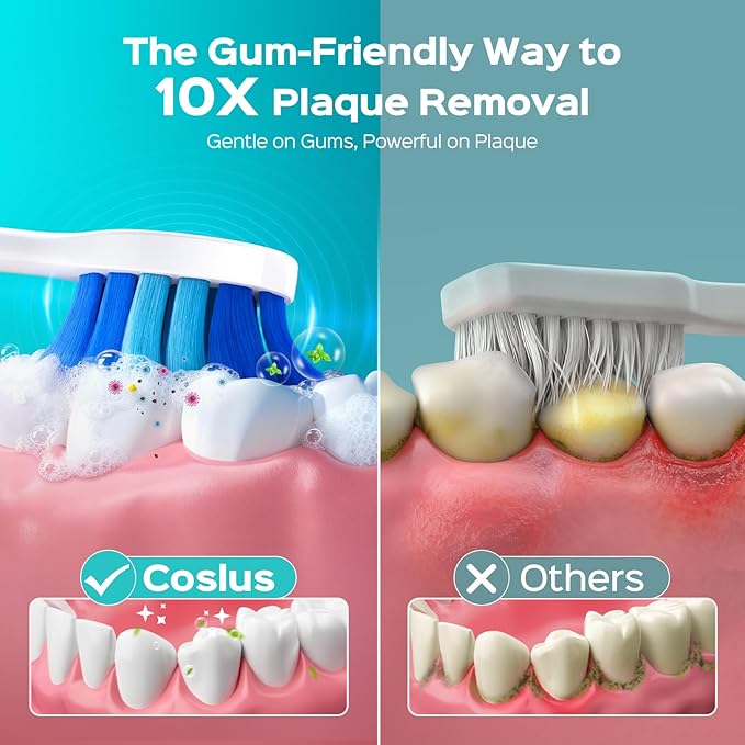 - Next-Gen Sonic Technology, Gum-Friendly Deep Cleaning: Developed over 3 years in collaboration with dental professionals, this next-generation sonic electric toothbrush features a superior motor and gum-friendly sonic tech. It delivers a proven deep clean, removing 10x more plaque—even in hard-to-reach areas—without irritating gums. With 5 cleaning modes & 3 intensity levels, it is ideal for various needs, including gum care, braces, and dentures, helps maintain fresh breath, and bright smiles