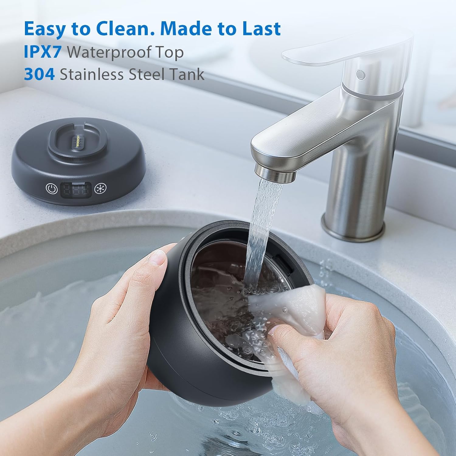 - IPX7 Waterproof & Easy-Clean Design: The upper body is IPX7 waterproof, so you can rinse it directly under the tap after use. The 304 stainless steel tank is corrosion-resistant and odor-proof. The split-design base is IPX3 splash-proof, making the entire cleanup process effortless and hassle-free.
