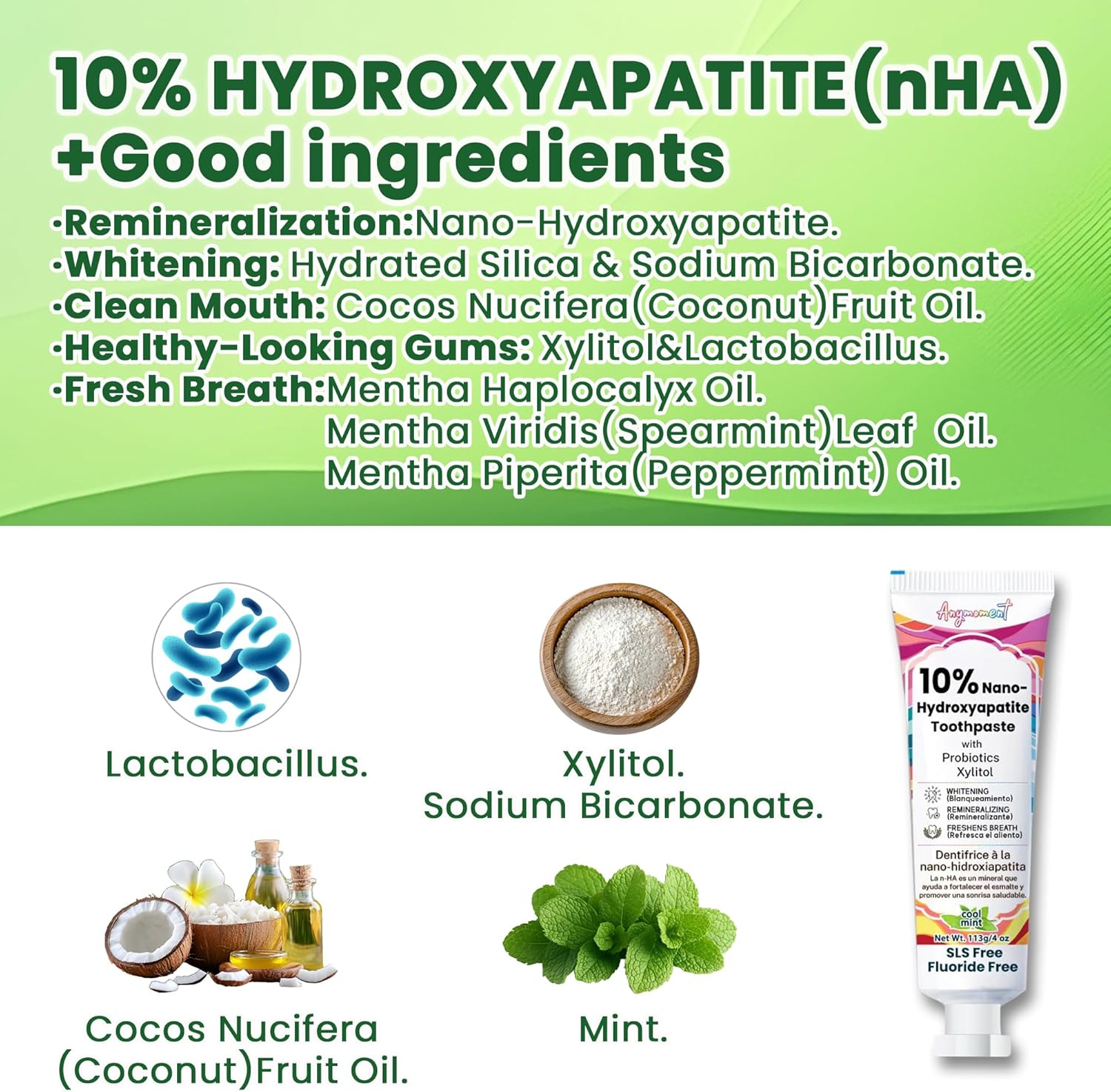 - NATURAL WHITENING, NO SENSITIVITY: Say goodbye to harsh bleaching agents. Our nano hydroxyapatite toothpaste smooths and whitens teeth by filling micro-lesions in the enamel, leaving you with a glossier, brighter smile—without causing sensitivity.