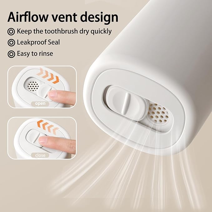- Toothbrush Travel Case with Air Flow Holes: This Toothbrush and Toothpaste travel case features an airflow ventilation hole design, which will change the rules. There is a ventilation hole switch valve at the bottom, and you only need to open the ventilation valve to speed up the drying of your toothbrush while ensuring the hygiene of the Toothbrush travel case. Cleaning the travel Toothpaste container is also more convenient