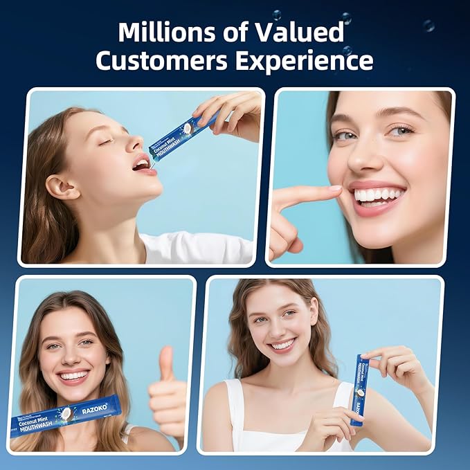 RAZOKO Mouthwash Travel Size-Portable Fresh Mint Packets,Alcohol & Fluoride Free Mouthwash,Disposable Oral Care Strips (0.41 Fl Oz (Pack of 30), Coconut)