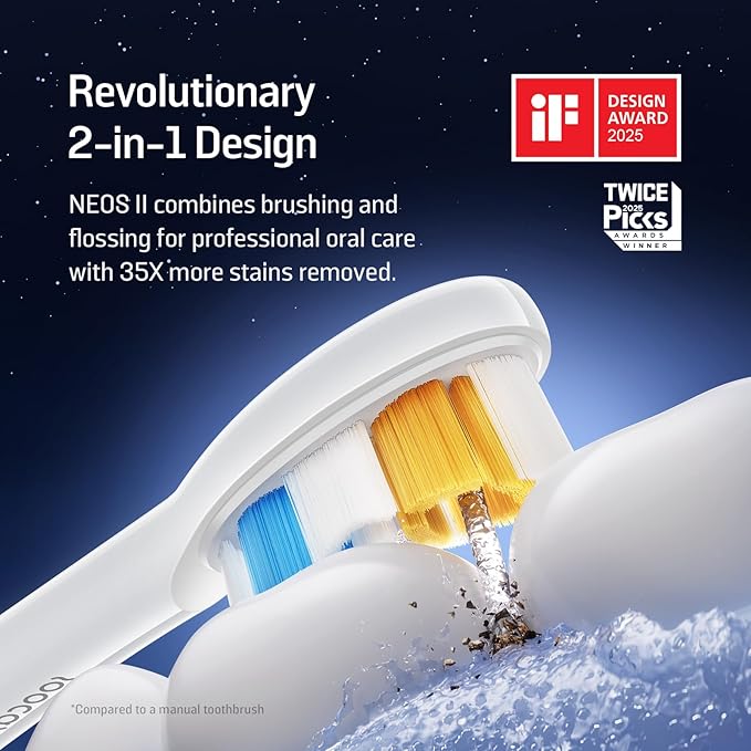 - TRAVEL-FRIENDLY: Weighing only 225g, the NEOS II features a compact, all-in-one design, making it perfect for both daily use and effortless travel—experience superior oral care anytime, anywhere.