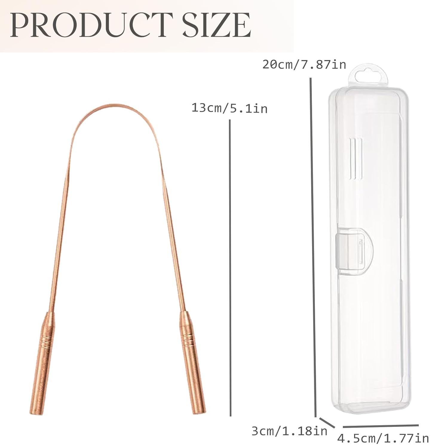 - Tongue Scraper Set: This set includes 2 premium copper tongue scrapers + 3 soft silicone tongue cleaners in vibrant colors, with a convenient travel case.
