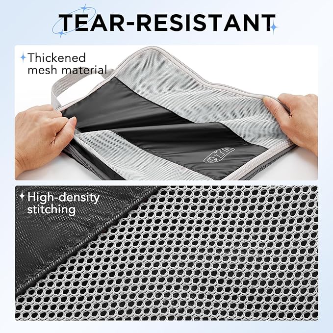 - Lightweight & Organized - Stay effortlessly organized with breathable mesh panels that let you see the contents of each cube at a glance. No more digging through your luggage. And with a lightweight design, you’re adding minimal weight to your luggage.