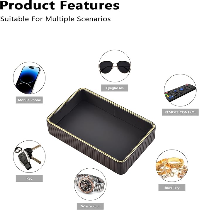 - Multifunctional Vanity Trays — Perfect for various scenarios such as living room TV stands, office desks, bedroom nightstands, dressing tables, and entryway consoles.It caters to diverse storage requirements and enhances the functionality of any area in your home