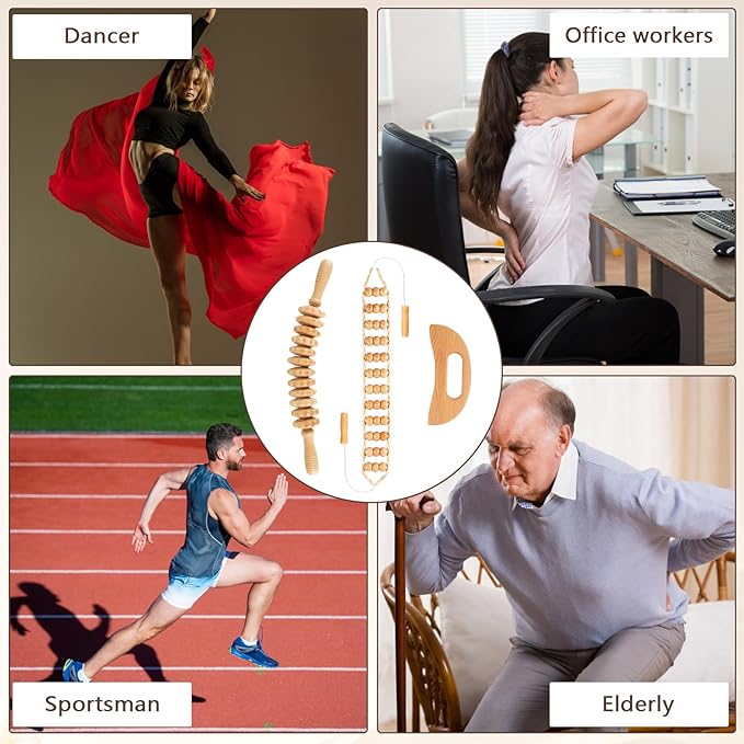 - Wooden Massage Roller Rope: The massage rope allows you to easily self-massage the back and legs. The three tools can be used individually or combined flexibly to comprehensively address various discomforts such as stiff shoulders and neck, lower back fatigue, and leg soreness