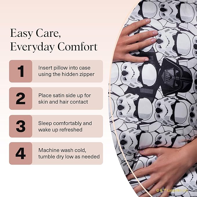 - AVAILABLE IN KING AND STANDARD-QUEEN SIZE – With a premium 600-thread count, this satin pillow case offers the perfect blend of softness and durability. A thoughtful gift for Star Wars fans, beauty lovers, or anyone who values satin pillowcase for hair and skin care in their sleep routine.