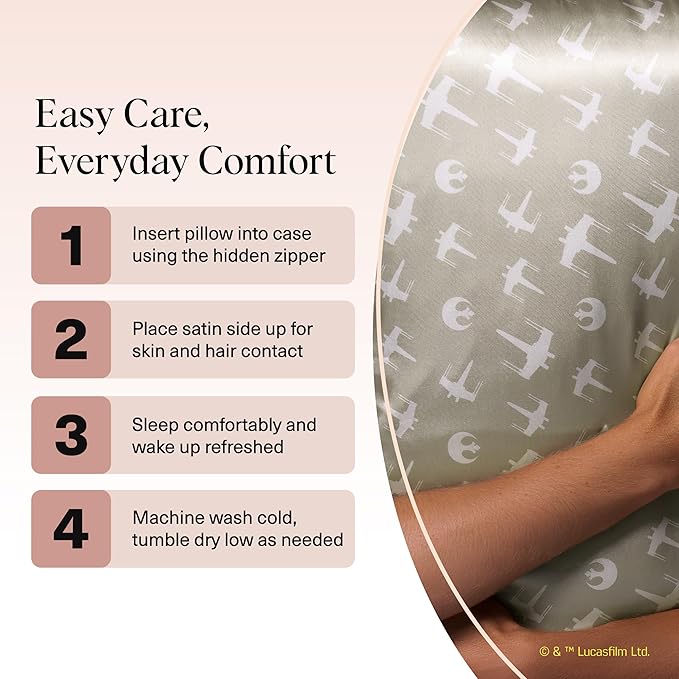 - AVAILABLE IN KING AND STANDARD-QUEEN SIZE – With a premium 600-thread count, this satin pillow case offers the perfect blend of softness and durability. A thoughtful gift for Star Wars fans, beauty lovers, or anyone who values satin pillowcase for hair and skin care in their sleep routine.
