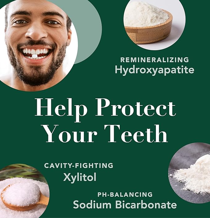 - Fresher Breath Instantly - Each mouthwash tablet is made with nano-hydroxyapatite, xylitol, sodium bicarbonate, tartaric acid, and pure mint essential oil to help strengthen enamel, balance pH, and freshen your breath. Just bite down to activate the tab for on-the-go oral care.