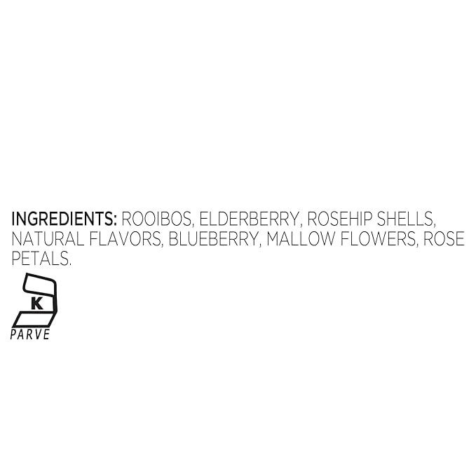 - INGREDIENTS - Rooibos, Elderberry, Rosehip shells, Natural Flavors, Blueberry, Mallow Flowers, Rose Petals.