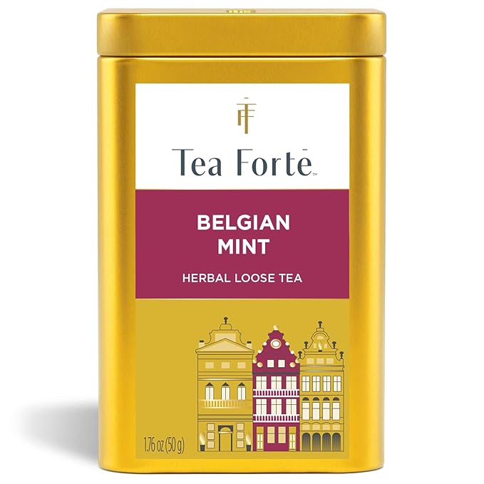 Tea Forte Belgian Mint Premium Loose Leaf Caffeinated Herbal Tea Blend Canister, Makes 35-50 Cups