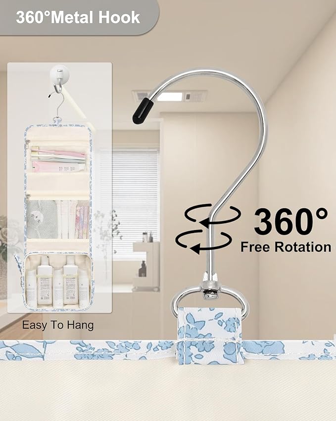 Relavel Small Hanging Toiletry Bag for Men and Women, Portable Hanging Organizer for Travel-Sized Shower Dopp Kit, Waterproof Toiletries Organizer with 3 Compartments for Outdoor - Blue Flower