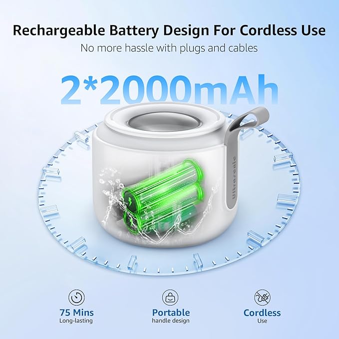 - Upgraded Cordless Design: This retainer cleaner features two built-in 2000mAh rechargeable batteries, delivering up to 75 minutes of cordless use. Say goodbye to cords and plugs! Effortlessly complete cleaning tasks anytime, anywhere. With IPX5 waterproofing, simply rinse under running water for easy cleaning. The Guyyr denture cleaner employs an innovative design that completely eliminates overflow and short-circuit risks, ensuring safe operation.