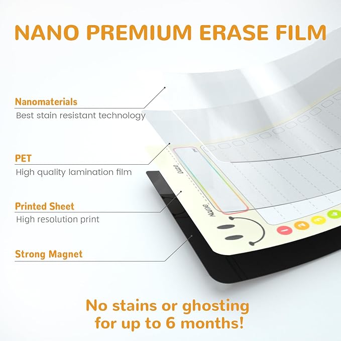 - 【Smooth Writing & Easy Erase】: Our list board use remium nano erase film, wipe clean without leaving stains or shadows.The fine tip black markers easy to write,make tracking tasks simple while keeping everyone accountable and organized.