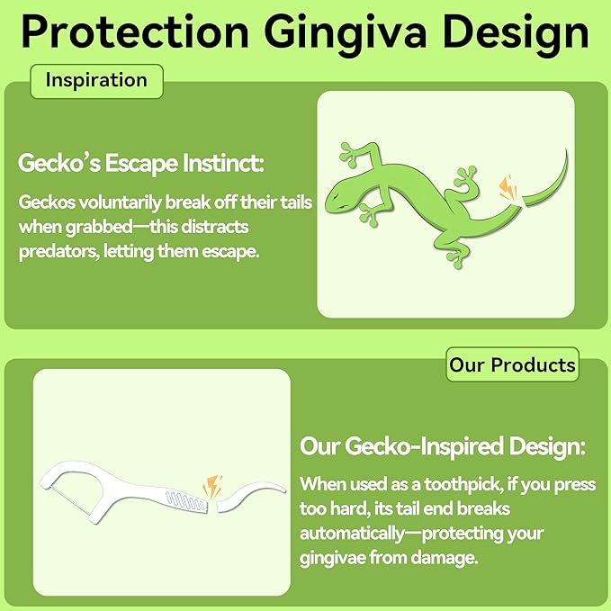 - DUAL-PROTECTION MECHANISM: Break-Safe Pick & Shred-Resistant Floss. The tail pick breaks automatically under excess force to protect gingivae, while the ultra-strong floss resists fraying for gentle, effective cleaning.