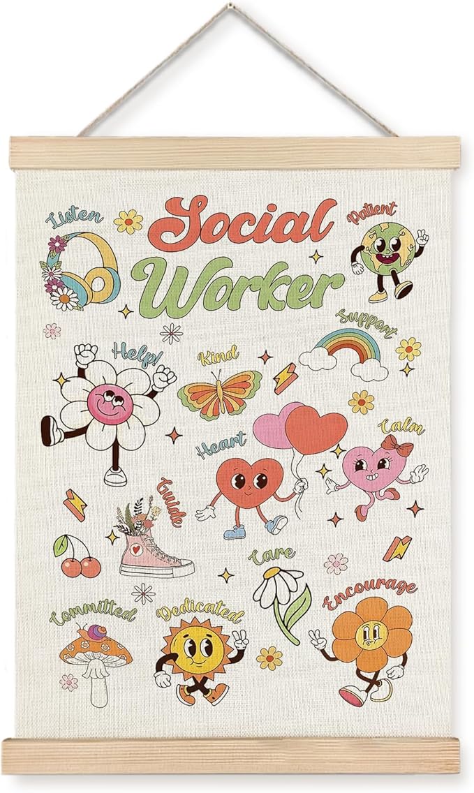Yomisex Social Worker Wall Art Poster, Social Workers Gifts for Women, Boho Inspirational Societal Worker Wall Art Framed for Home Bedroom Living Room Office Decor, 12x16 Inch