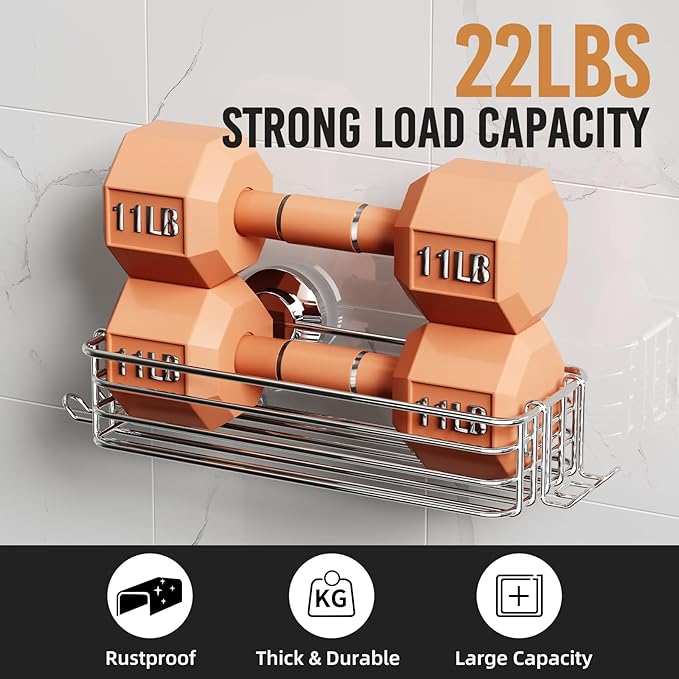 - Powerful & Durable Suction: TPE Suction Cup with bionic design of octopus tentacles and ABS plastic Hook ensures weather proof(-4°F-174°F), waterproof, and anti-aging; bathroom shower organizer with thicken plastic can hold up to 10 KG / 22 lbs and stick sturdy for years after installation without any concerns