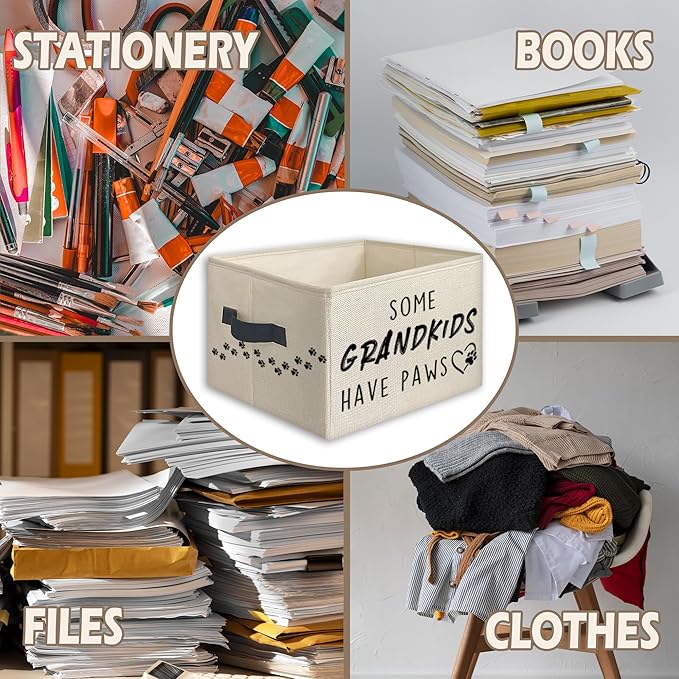 Dog Grandma Gifts Foldable Storage Bins Box with Handles, Dog Owner Lovers Gifts, Some Grandkids Have Paws Collapsible Toys Books Clothes Organizer Basket for Bedroom Bathroom