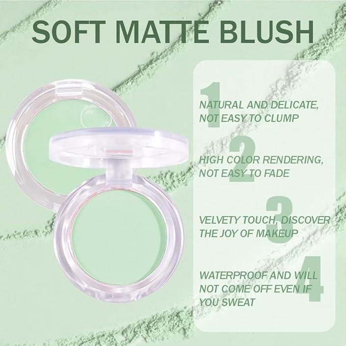 - Beautiful Color Payoff – #09 Light Cyan Green delivers a smooth matte cheek color, giving skin a natural, healthy-looking finish.