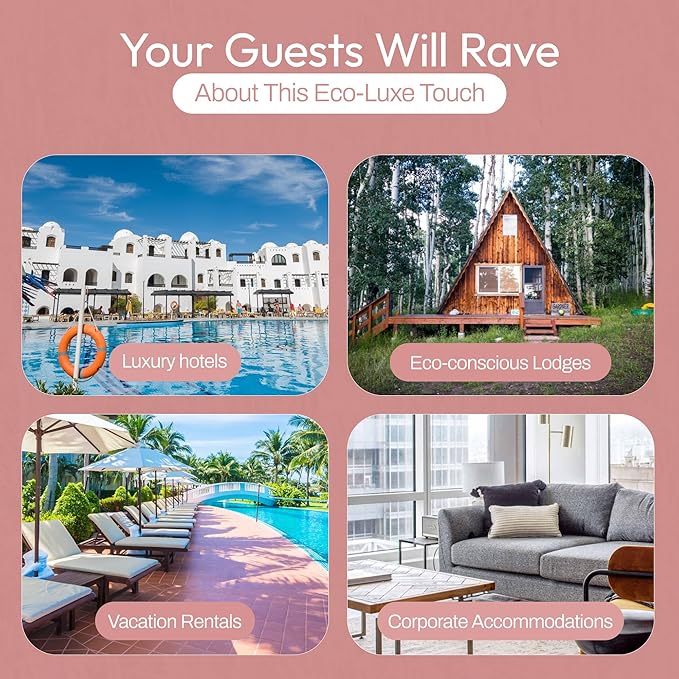 - EARTH CONSCIOUS PACKAGING – Our toiletries use wheat straw plastic for a sustainable and stylish alternative to petroleum based platic. These organic mini toiletries are perfect for earth conscious Airbnb supplies or hotel bulk sets.