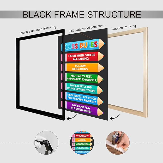 - Enhances Classroom Atmosphere – The elegant canvas texture combined with vibrant colors instantly brightens any learning space. By making rules visually appealing and easy to notice, it naturally encourages students to follow guidelines and participate more actively in class.