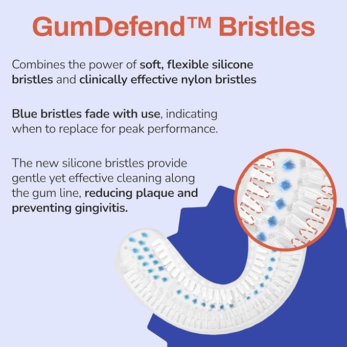 - GumDefend BRISTLES: Equipped with 58,000 soft bristles, combining the benefits of Nylon and an added row of Silicone for enhanced plaque removal and gum care, even in hard-to-reach areas like back molars.