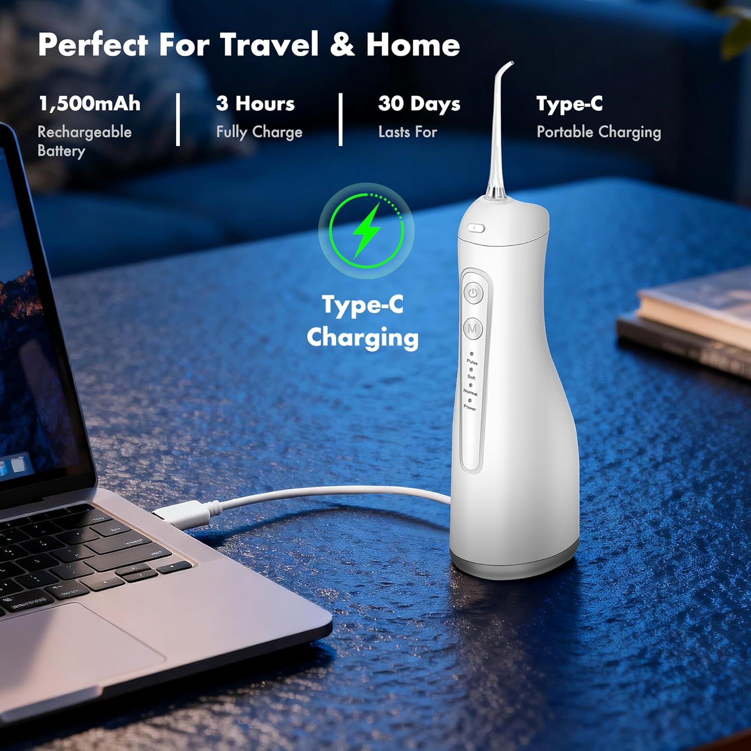 Dygoophy® K2 Rechargeable Oral Irrigator & Water Flosser | 300ml Large Tank, IPX7 Waterproof, 4 Cleaning Modes, 30-Day Battery Life, Low Noise for Braces, Gum Care & Teeth Whitening (White)