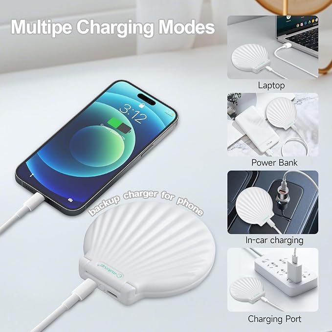 - 💄Unique Shell Shape Design - Hand mirror with LED light, rechargeable small mirror, mini size 3.5 inch. Whether the light is good or not, no matter where you are, office, party, date, meeting, vacation, daily use, indoor or outdoor, this mirror can meet your usage needs. It's a portable mirror with small size and light weight, easy to carry in handbag, pocket or purse.