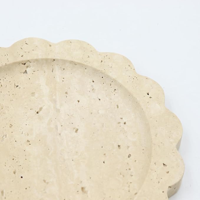 Round Marble Decorative Tray with Scalloped Edge, Luxury Natural Stone Bathroom Vanity Tray, Dresser Top Perfume Coffee Home Kitchen Sink Tray, Key Trinket Ring