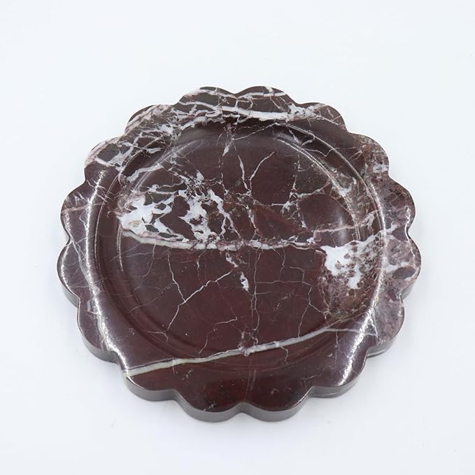 Round Marble Decorative Tray with Scalloped Edge, Luxury Natural Stone Bathroom Vanity Tray, Dresser Top Perfume Coffee Home Kitchen Sink Tray, Key Trinket Ring