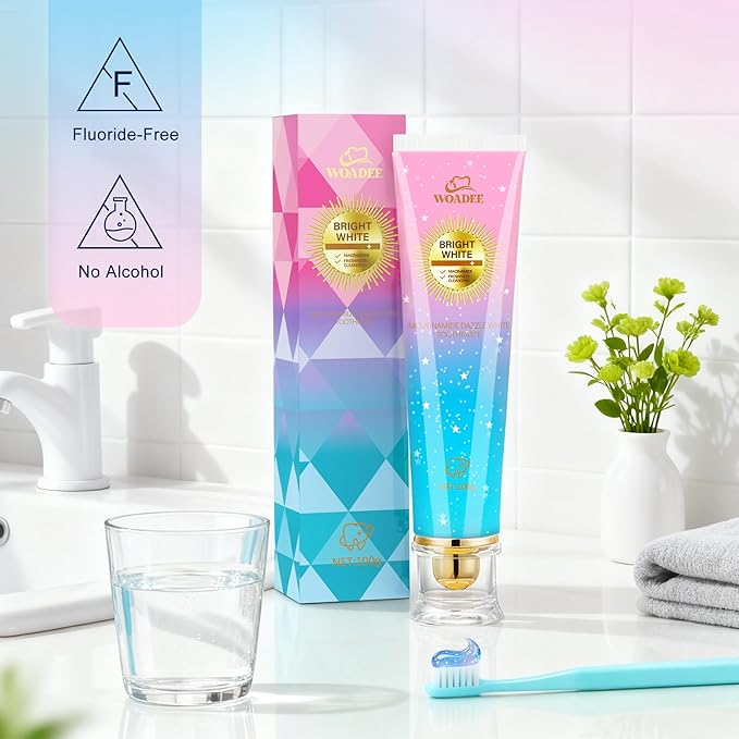 - 【Fluoride-Free, Natural Gentle Care】Carefully selected natural ingredients and fluoride-free formula, our radiant whitening toothpaste is gentle on enamel and sensitive teeth, provides a thorough clean, without discomfort or irritation.