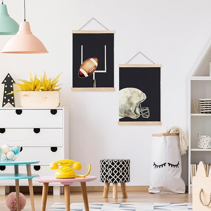 - Ready to Display: Includes wooden top and bottom frames with hanging twine attached. No additional tools or assembly required.