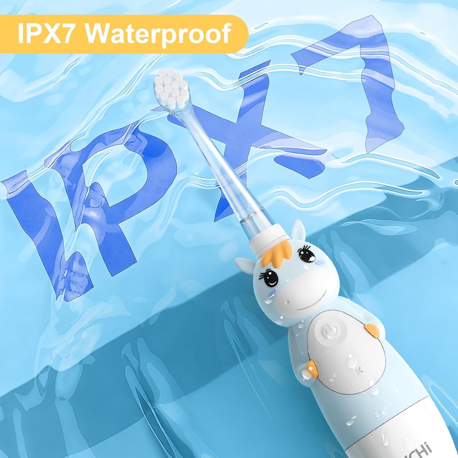 - FUN & KID-FRIENDLY DESIGN - This electric toothbrush features a playful colorful LED light that makes brushing enjoyable for kids. The handle is shaped like an adorable unicorn, specially designed to appeal to young children.