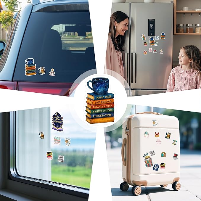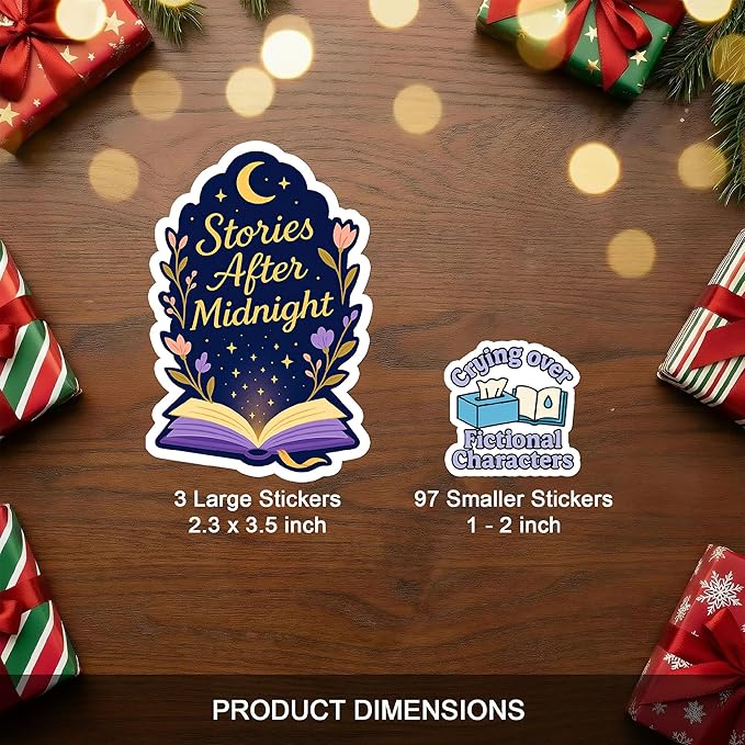 - 100-piece book sticker collection – Features creative book-inspired designs, reading quotes, book stacks, and cozy bookish themes for readers of all ages.