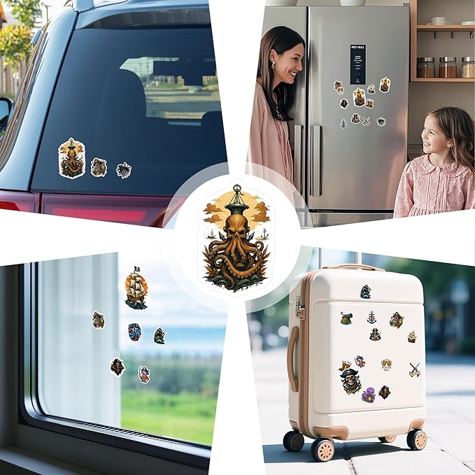 - 100 PCS Pirate Stickers – Includes ships, treasure maps, anchors, skulls, swords, sea creatures, and adventurous pirate graphics.
