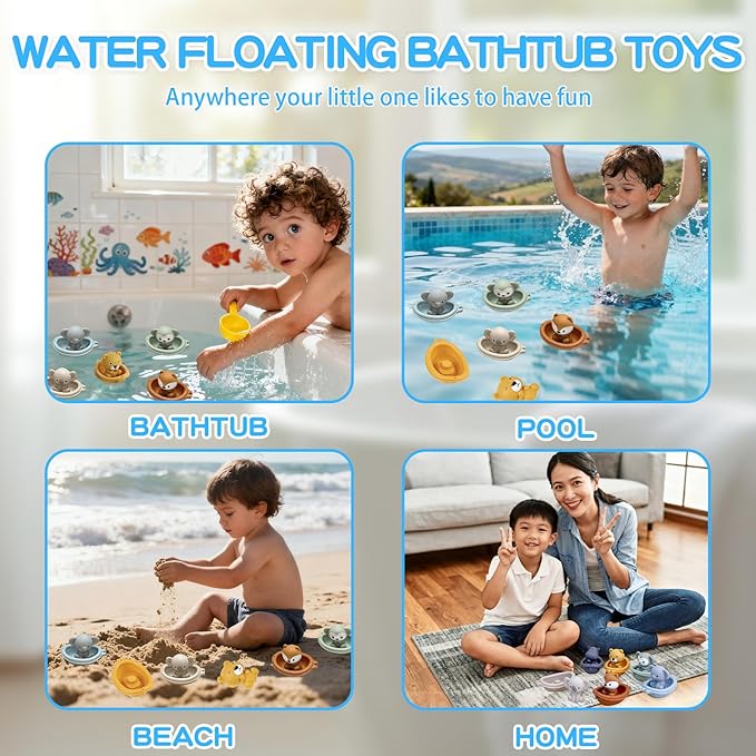 - IDEAL GIFT BATH TOYS FOR BOYS AND GIRLS: These soft, easy-to-grap toddler bath toys are perfectly sized for small hands, making them an excellent gift choice for both boys and girls ages 18 months and up. The water toys offers versatile play options — not only a fun for bathtime, but also great for pool play, beach adventures, stacking, and finger puppet storytelling. Whether for a birthday, holiday, or special surprise, these bathtub toys provide lasting fun and development