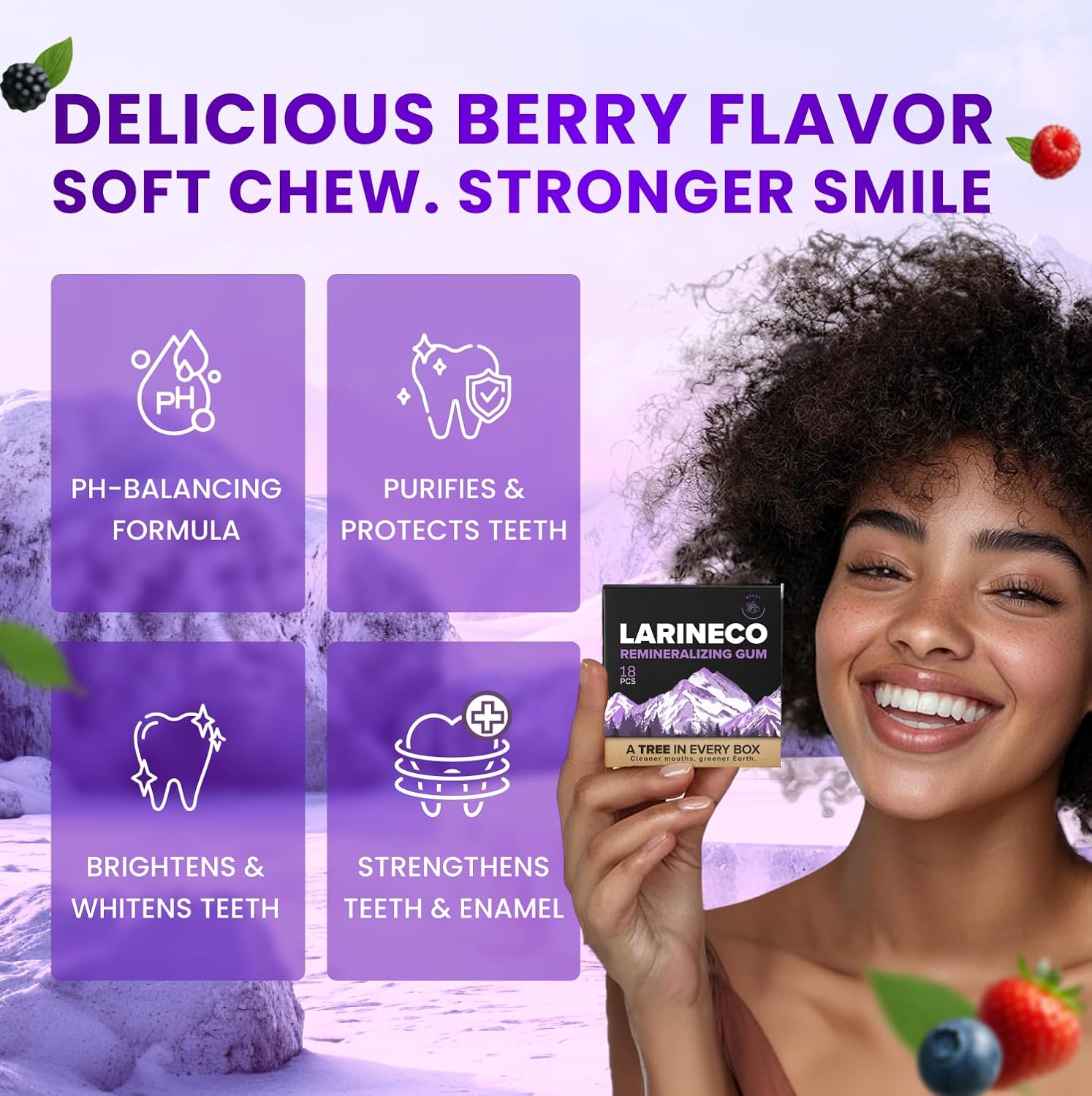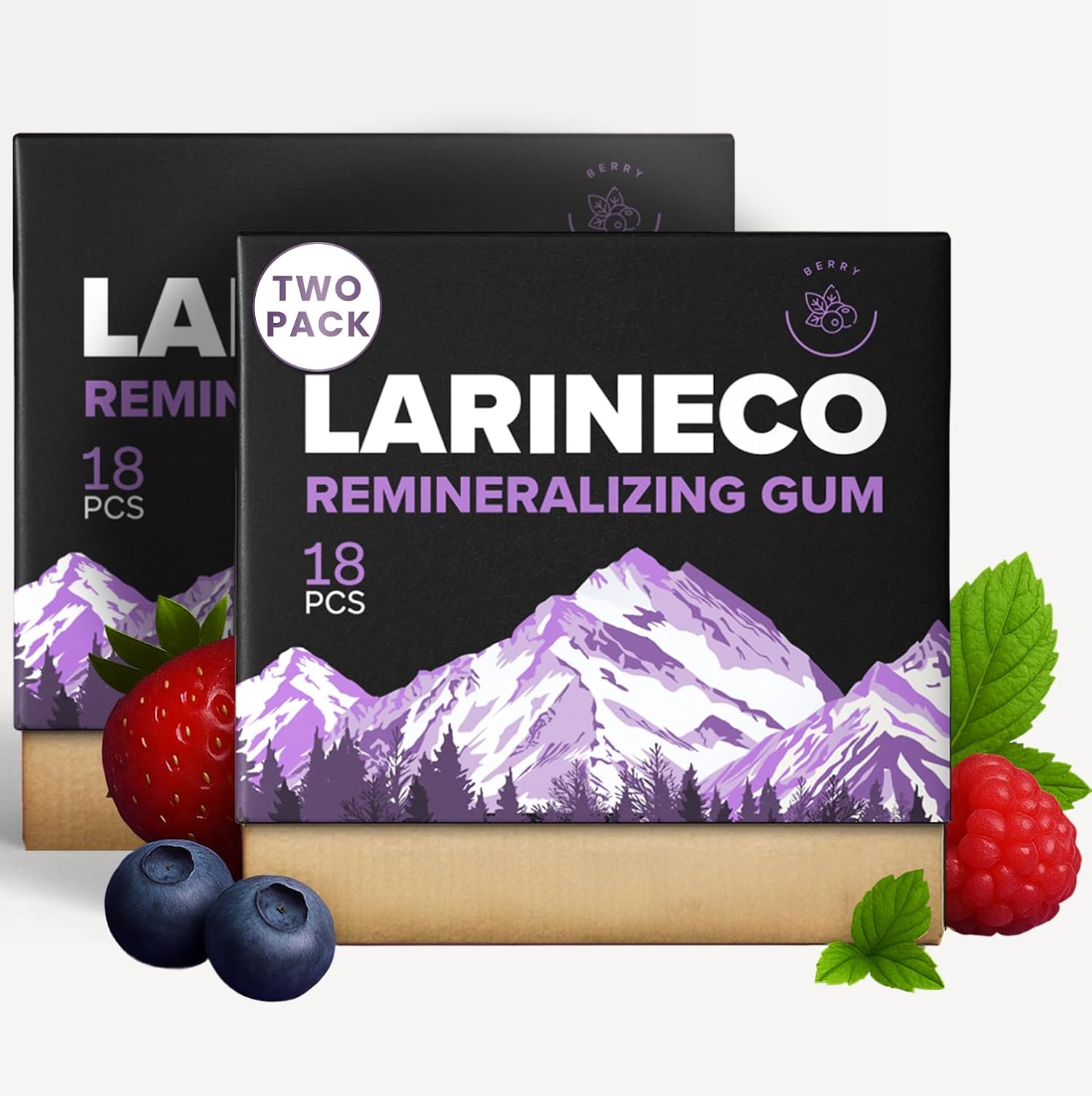 Larineco Remineralizing Gum with Nano Hydroxyapatite & Xylitol – Sugar-Free Cinnamon Xylitol Gum – Plastic-Free, Dye-Free, Aspartame-Free – Natural Base – 18 Pieces (18 Count (Pack of 2), Berry)