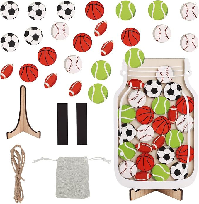 - Product Contents: You will receive 1 reward jar, 2 wooden stands, 1 cloth bag, 2 magnets, 1 rope, 25 ball-shaped tokens (rugby, baseball, basketball, football, and tennis ball). This quantity is enough to meet the reward needs of your classroom incentive system.