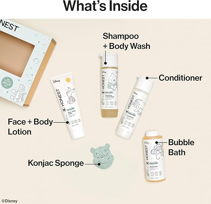 - GIFT OF CLEAN: Keep baby and the whole family moisturized and clean with the Honest Bathtime Gift Set, now with an enchanting Disney design. Fall in love with our hypoallergenic, physician-tested personal care essentials for super bubbly bathtime fun