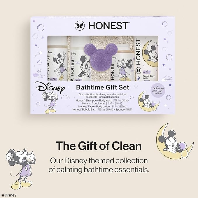 - GIFT OF CLEAN: Keep baby and the whole family moisturized and clean with the Honest Bathtime Gift Set, now with an enchanting Disney design. Fall in love with our hypoallergenic, physician-tested personal care essentials for super bubbly bathtime fun