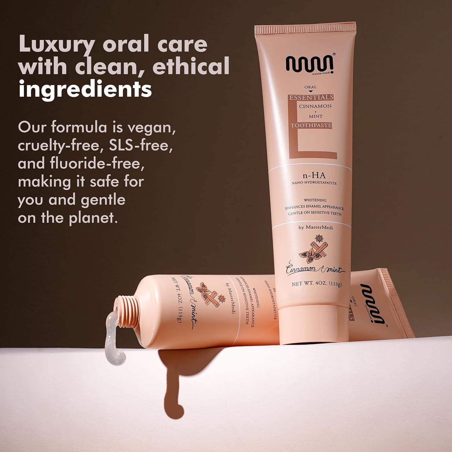 MasterMedi Nano Hydroxyapatite Toothpaste (Inspired by 10% nHA Formulas), Fluoride-Free, Whitening & Sensitivity Relief, Enamel Repair Support, SLS-Free, Xylitol, Mint & Cinnamon 4 Oz (Pack of 3)
