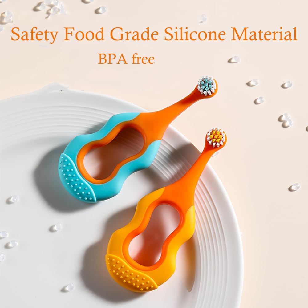 - 【Soft bristle toddler toothbrush】: Double-layered fine and soft bristles designed specifically for infant oral care, gentle on emerging teeth and sensitive gums
