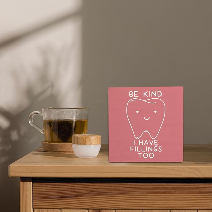 Dental Decor Wooden Signs,Pink Dental Hygienist Wooden Box Sign,Funny Dentist For Home Office Shelf Table Decor 5x5 Inches,Dental School Gift, Dentist Gifts