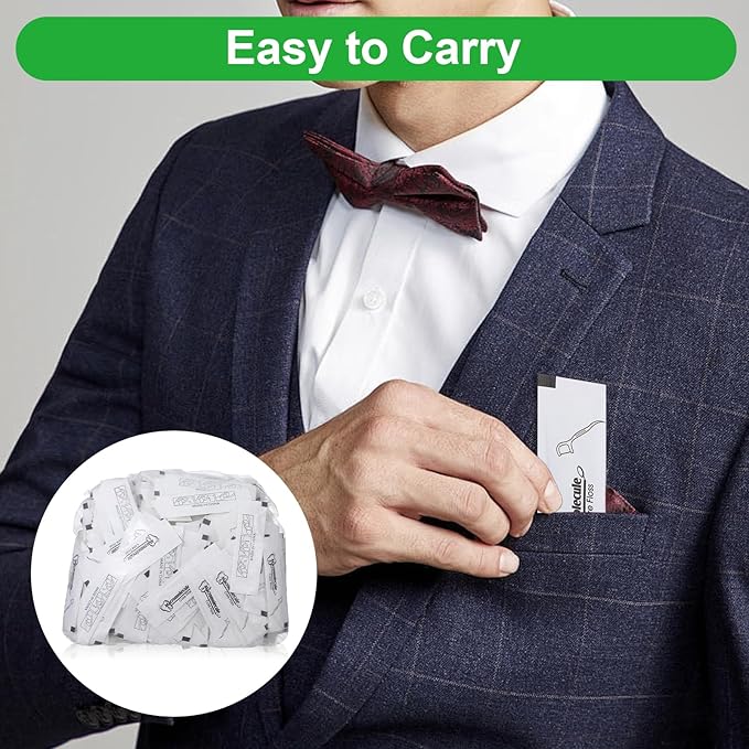 - Package Includes: This comprehensive bulk pack offers a generous supply of 1000 individually wrapped floss picks, ensuring optimal hygiene and convenience. Perfectly suited for travel, these dental floss picks are an essential addition to any guest bathroom essentials, providing a reliable and sanitary solution for maintaining oral health on the go. With this ample quantity, you'll never run out of flossers, whether at home or away.